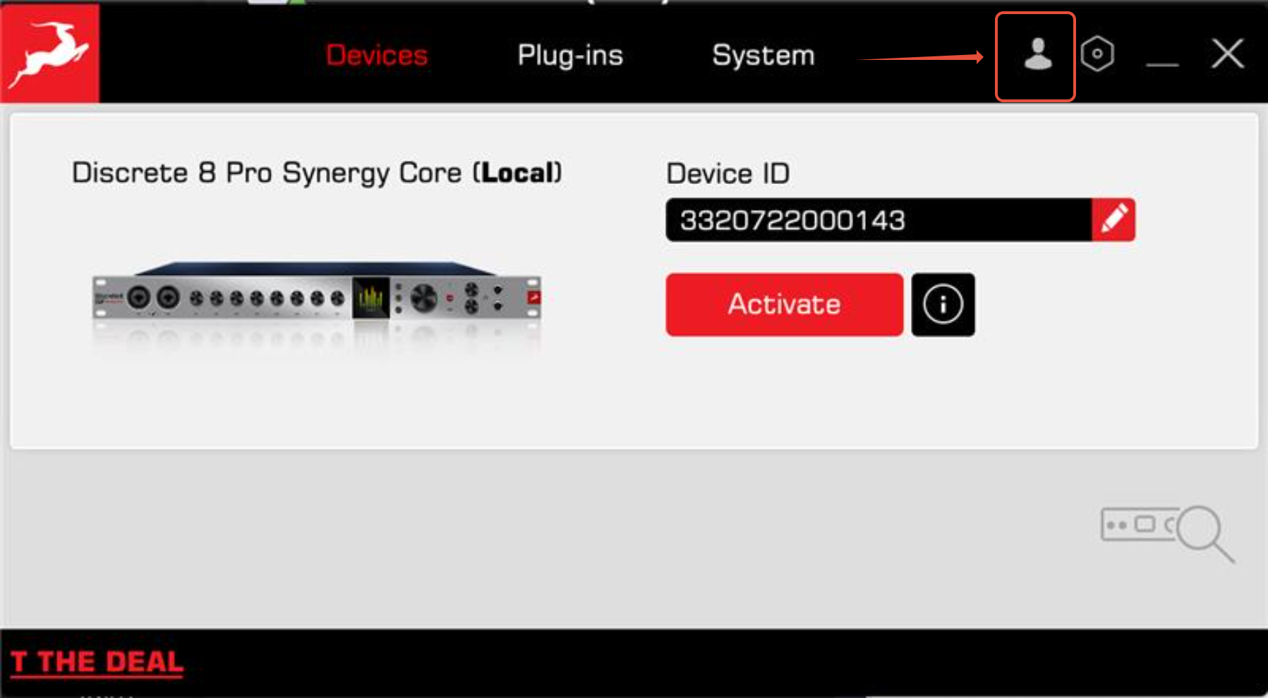 Ten en cuenta que el procedimiento obligatorio de activación del dispositivo requiere una conexión a internet activa en tu ordenador. No es posible activar un dispositivo Antelope Audio sin conexión. Tu Discrete 8 Synergy Core debe activarse en línea para funcionar. Este capítulo contiene las instrucciones necesarias: