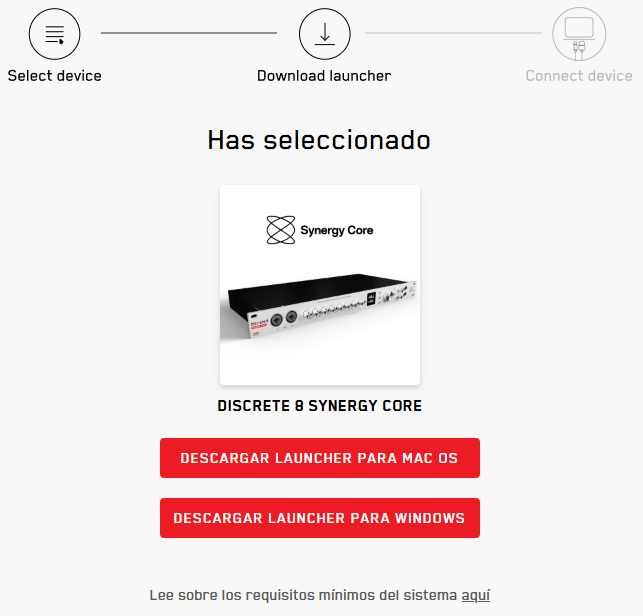 Una vez finalizada la instalación, puedes continuar con las instrucciones para tu sistema operativo y configurar la Discrete 8 Synergy Core para su uso con Windows o macOS.
